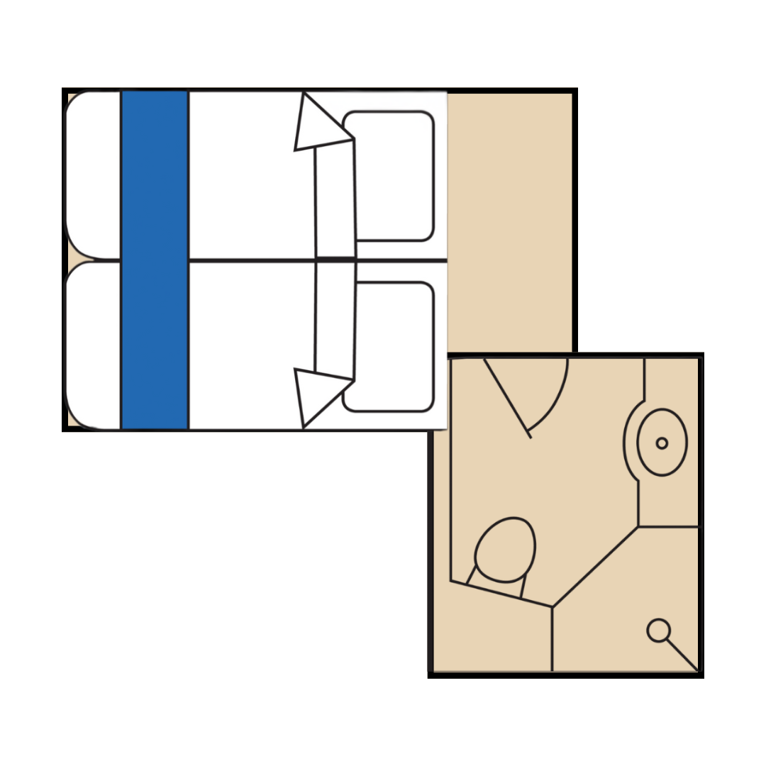 Double Private: Guest booking Double Private will have a private double-occupancy cabin on both St. Helena and Icebird. Cabins feature two lower single beds on St. Helena and a double bed on Icebird. Both cabins with their own en-suite bathroom.